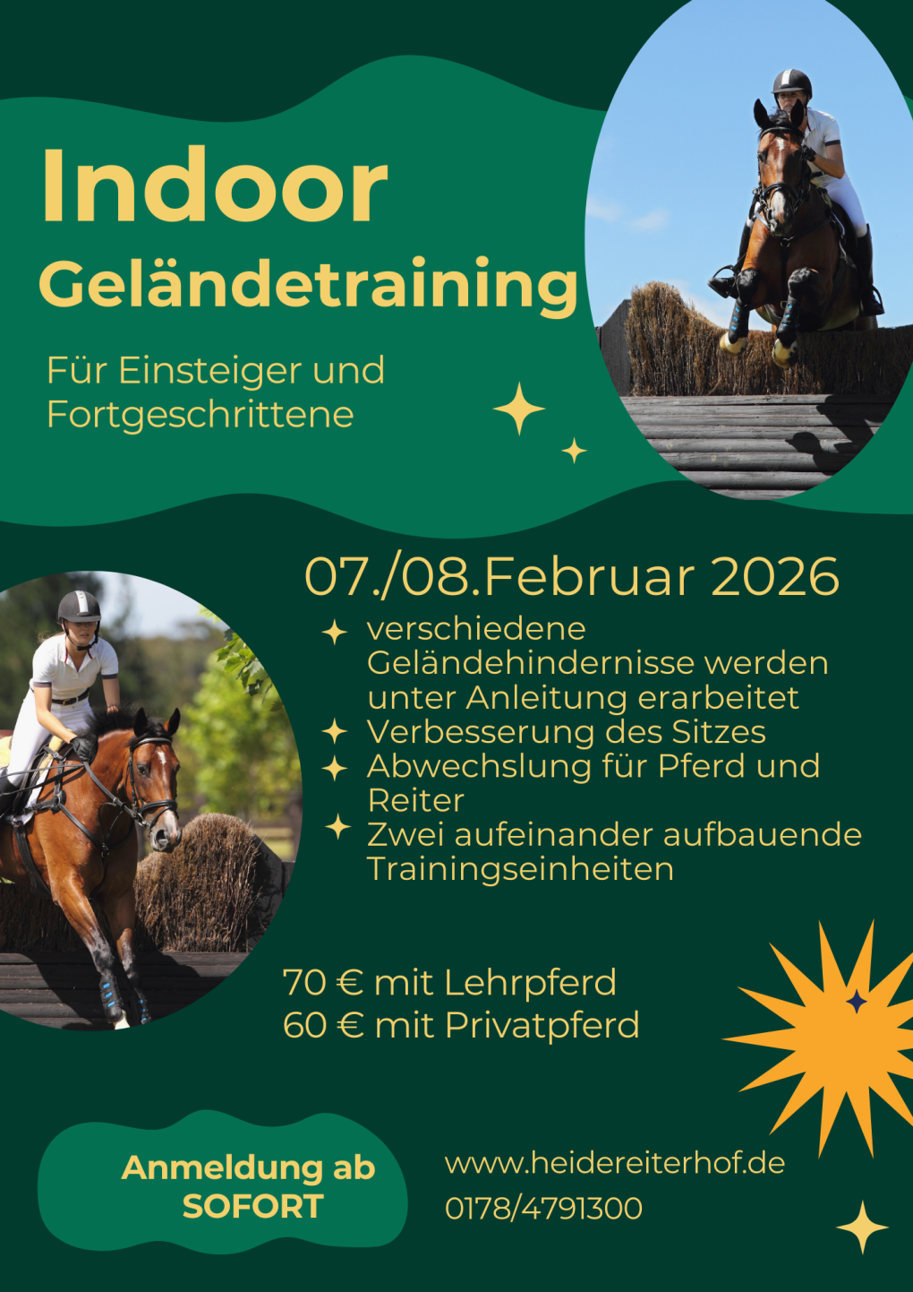 Start ist Samstag der 15.03.2025 Anmeldegebühr 80,00 € ( für 4 Stunden a 60 Minuten )